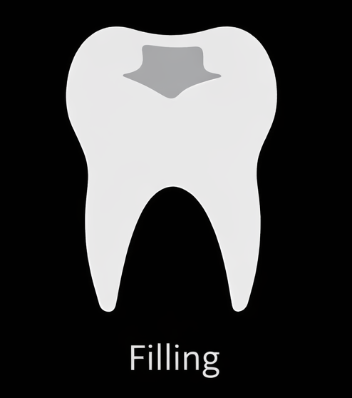 A filling is a direct restoration placed in the tooth in one visit to repair a cavity or small area of damage and restore normal shape and function.